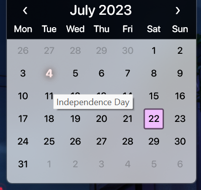 For every language in Droptop, a calendar can be added to show the national holidays in the Calendar App.
